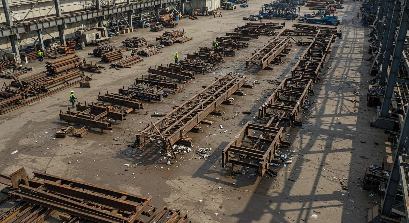 - Процесс приёма и сортировки металлоконструкций